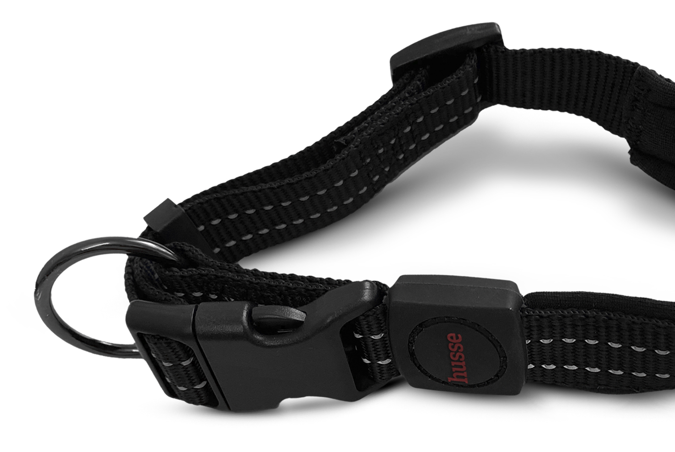 Ein reflektierendes und verstellbares Halsband aus strapazierfähigem Nylon mit neoprengepolsterter Rückseite für optimalen Komfort Ihres Haustieres. Die einzigartige Platzierung des vollständig verschweißten O-Rings ermöglicht eine einfache Befestigung an der Leine. Das Design bietet ein Abreißsystem, das die Schnalle fängt und es Ihnen ermöglicht, das Halsband wieder zu befestigen, wenn Ihr Hund sich vom Halsband befreit.