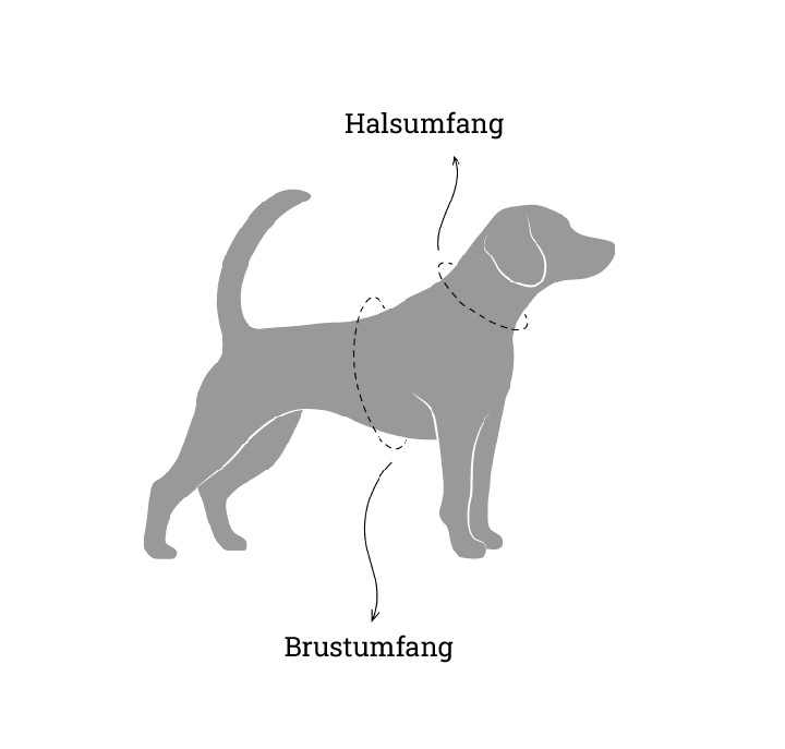 Messen Sie den Umfang Ihres Hundes an der breitesten Stelle des Rumpfes, rechts hinter den Vorderbeinen mit einem Stoffbandmaß.