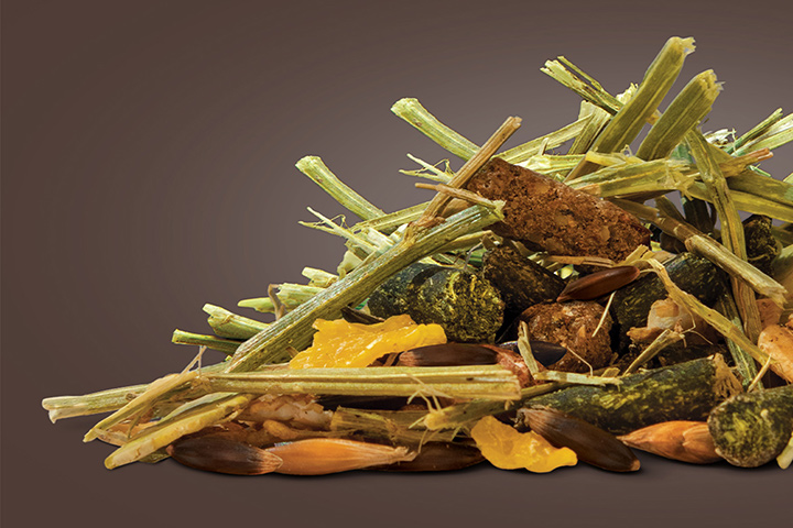 Luzerne-Pellets, expandierte Leinsamen und Lein-Spreu-Pellets – Diese sind reich an langen Fasern, sehr vorteilhaft für den Verdauungstrakt.