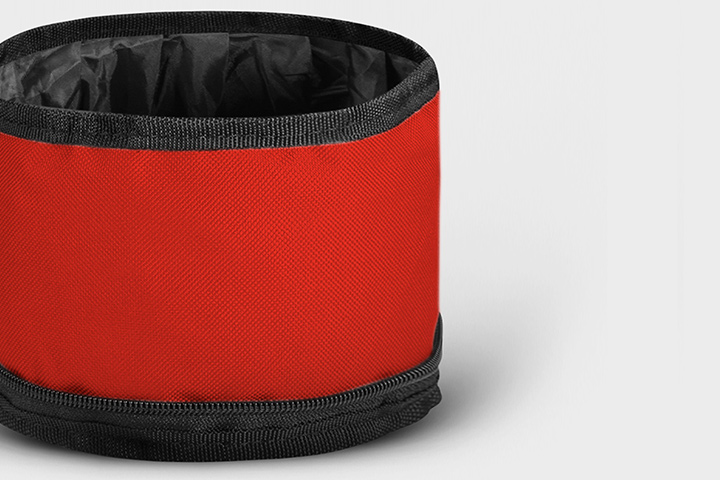 Faltbarer Reisenapf aus strapazierfähigem wasserdichtem Nylonmaterial.