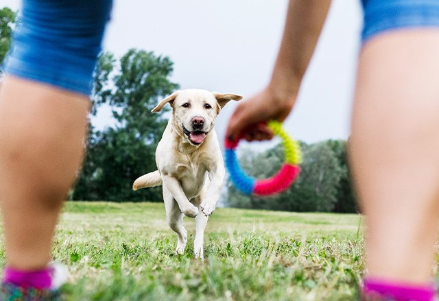 Selbst wenn es für Ihr Haustier am bequemsten ist, auf der Couch zu faulenzen, sollten Sie es tagsüber immer zu körperlicher Aktivität ermutigen. Es kann herausfordernd sein, eine ältere Katze oder einen wenig aktiven Hund zum Laufen zu bringen, und Sie müssen wahrscheinlich kreativ werden. Halten Sie immer ein paar tolle Spielsachen bereit. Jedes Haustier kann unterschiedliche Vorlieben haben, wenn es um Spielzeug und Spielzeit geht. Geben Sie Ihrem Hund oder Ihrer Katze also eine Auswahl. Berücksichtigen Sie bei der Auswahl von Spielzeug für Ihr Haustier immer die Größe und das Gewicht des Spielzeugs - ein zu kleines Spielzeug kann eine Erstickungsgefahr darstellen, während ein zu großes und schweres Objekt Schmerzen verursachen kann, wenn Ihr Haustier versucht, es aufzunehmen.