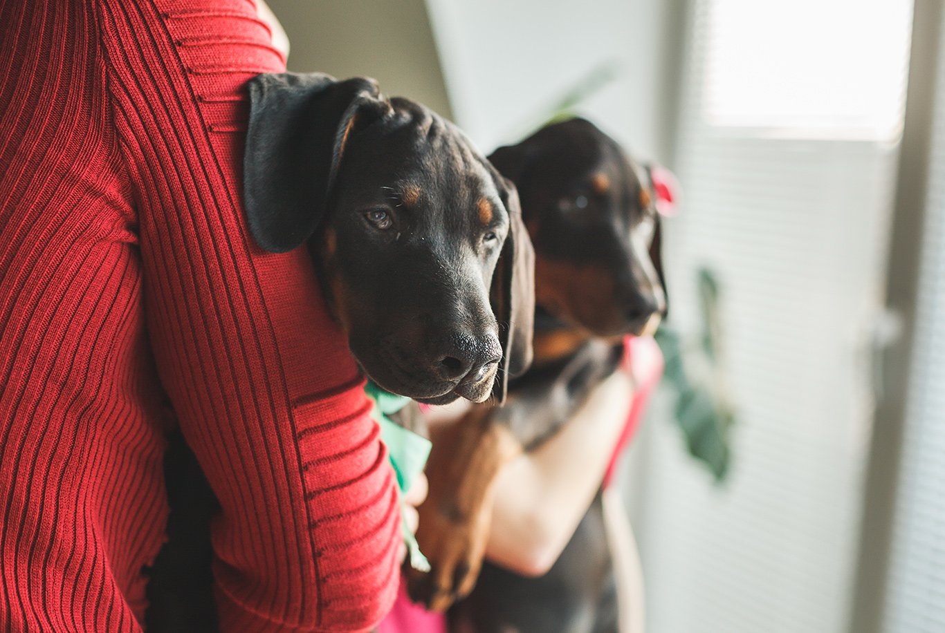 Dobermänner sind für ihren starken Charakter und ihr Temperament bekannt. Diese Hunderasse ist extrem belastbar, sehr energiegeladen und aktiv und hat eine hohe Schmerztoleranz. In den richtigen Händen wird der Dobermann zu einem treuen und besonnenen Begleiter, aber seine Wachsamkeit macht ihn zu einem großartigen Wachhund. Hunde dieser Rasse binden sich meist an einen Menschen, bleiben aber anderen Familienmitgliedern gegenüber freundlich. Dobermänner fühlen sich sehr beschützend gegenüber Kindern, was zu einem Ärgernis werden kann, wenn Sie Ihr Kind bei einem Kindermädchen oder einem engen Freund lassen müssen. Diese Hunderasse kann sowohl die Gesellschaft von Menschen als auch von anderen Tieren genießen.